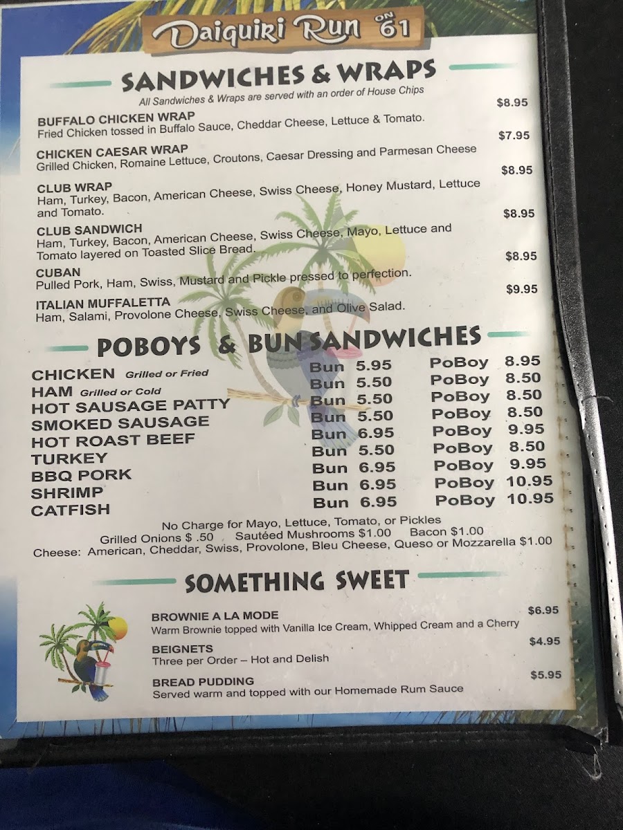 Happy customers rave about the friendly staff and generous portions, making each visit memorable. With great lunch specials and a range of unique daiquiris—perfect for a quick getaway—the atmosphere at Daiquiri Run on 61 is both welcoming and lively. Come indulge your taste buds!