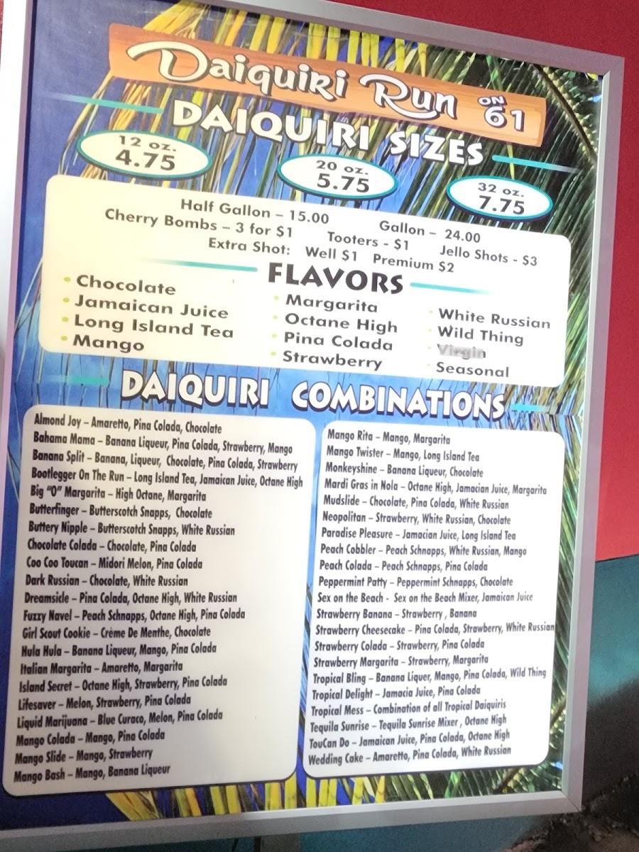 Welcome to Daiquiri Run on 61, a hidden gem located at 4337 Airline Dr, Metairie, LA. This vibrant spot is perfect for those craving delicious bar food and refreshing drinks.